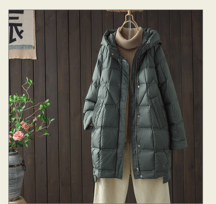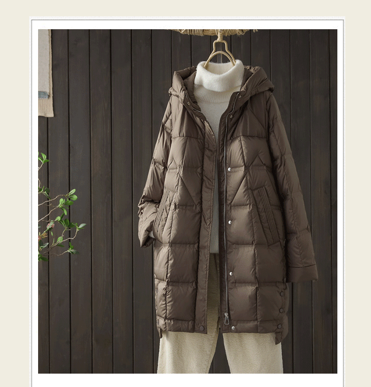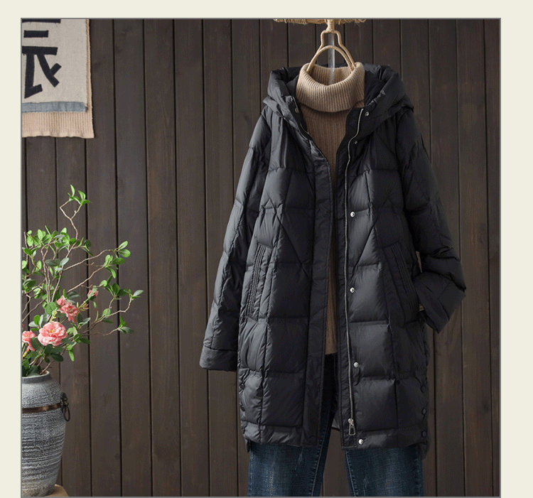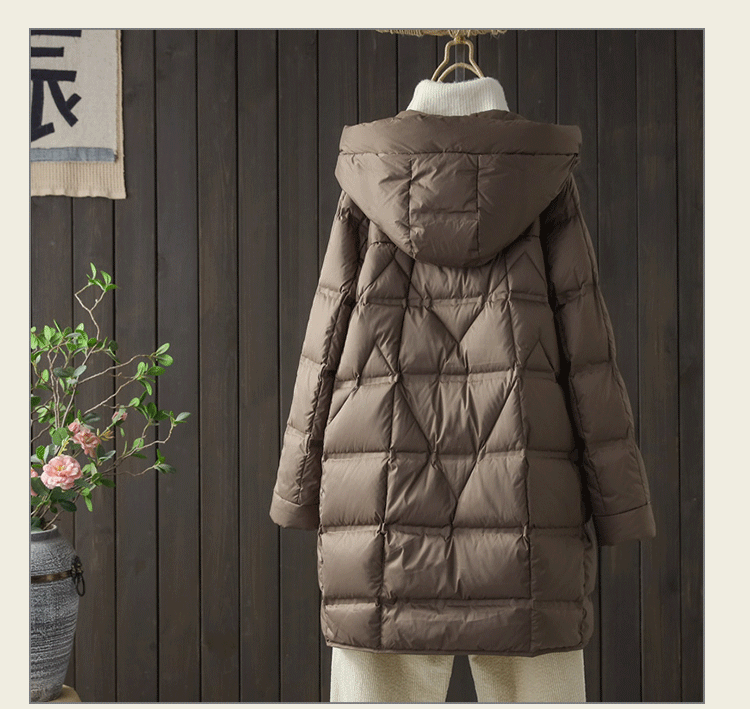 Autumn And Winter New Mid-length Adhesive Hooded Lightweight Down Jacket Women